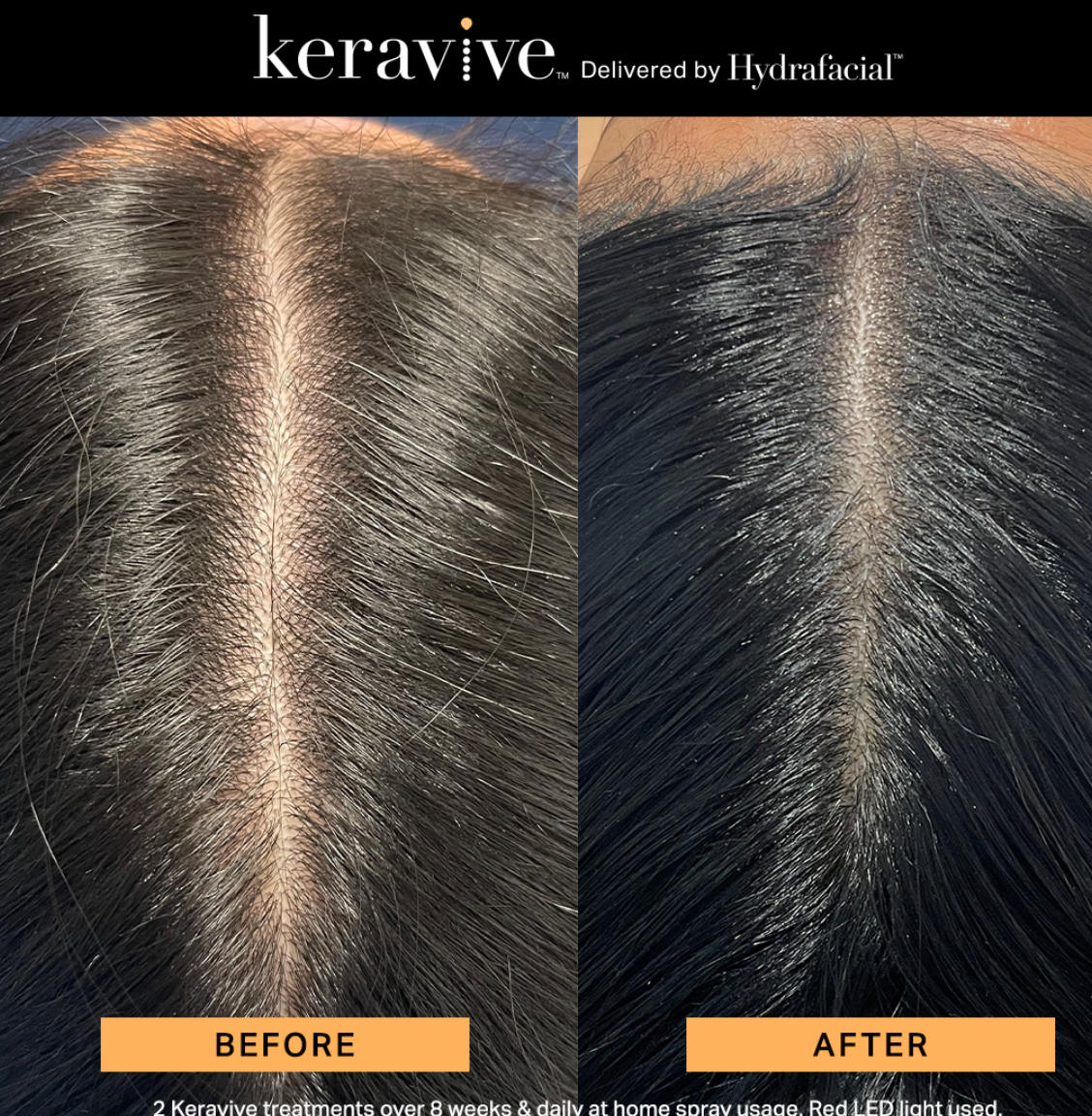 | Step 3: Extend & Enhance (Take-Home Spray) | You receive a HydraFacial Keravive Peptide Complex Spray. | A daily-use spray to extend and enhance the in-office benefits between treatments and keep your follicles nourished. |